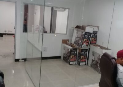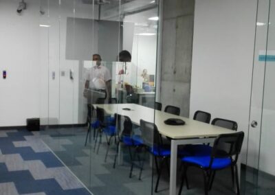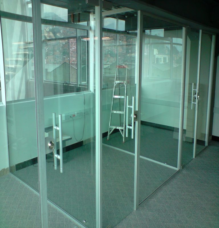 Fachadas en vidrio templado 10 MM, espacios amplios y amenos para locales y oficinas.